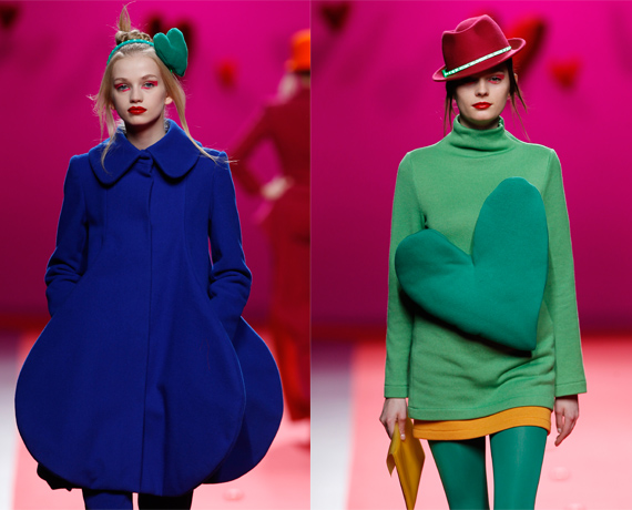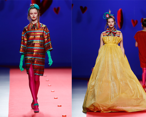 Ágatha Ruiz de la Prada: O la fiesta de Cibeles. Luces en medias, sombreros y tocados y muchos corazones para llevar a cabo su explosión de color.