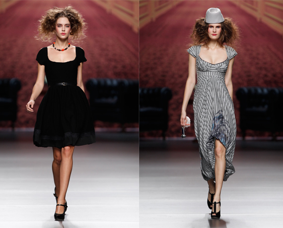 Miguel Palacio: Mostraba también algunas de las prendas que ha diseñado para Hoss Intropia. Más sobrio que los anteriores, colores más oscuros y de cortes muy elegantes. Me conquistó con sus grandes lazos y los vestidos cortos discotequeros.