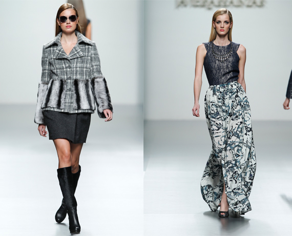 Ailanto: Las modelos pisaban lo que parecía hielo y enseguida nos pusimos en "modo frío". Grises y tierras nos trasladaban a un invierno helador que ellos convirtieron en acogedor y suave gracias a las notas de colores pastel y coral.