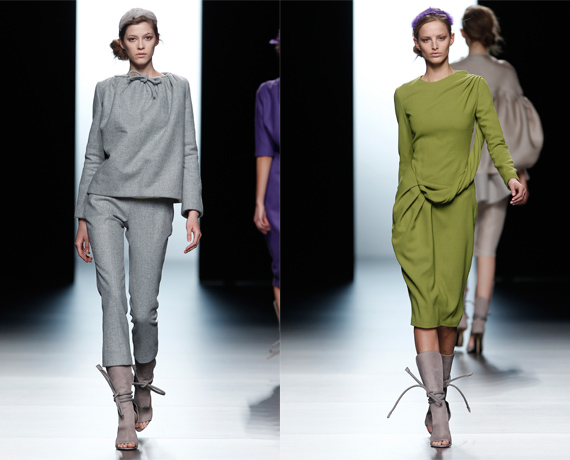 Amaya Arzuaga: Personalmente, la colección que más me ha gustado hasta ahora. Su desfile supuso un soplo de aire fresco. Preciosas coletas daban a sus modelos una sensación de pureza que permitía que cada pieza de la colección hablase por sí sola. Mucha mini, cuero y vestidos largos de rayas en verde, rojo o naranja.